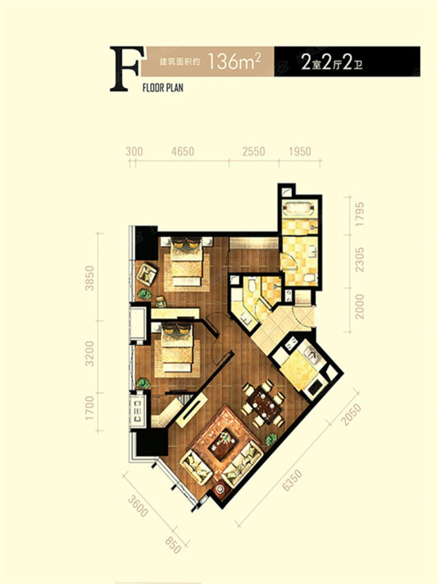 了解2室2厅2卫 商业类 在售户型的详细信息