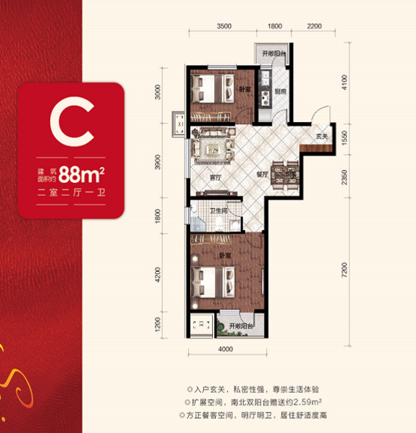 了解2室2厅1卫 住宅 在售户型的详细信息