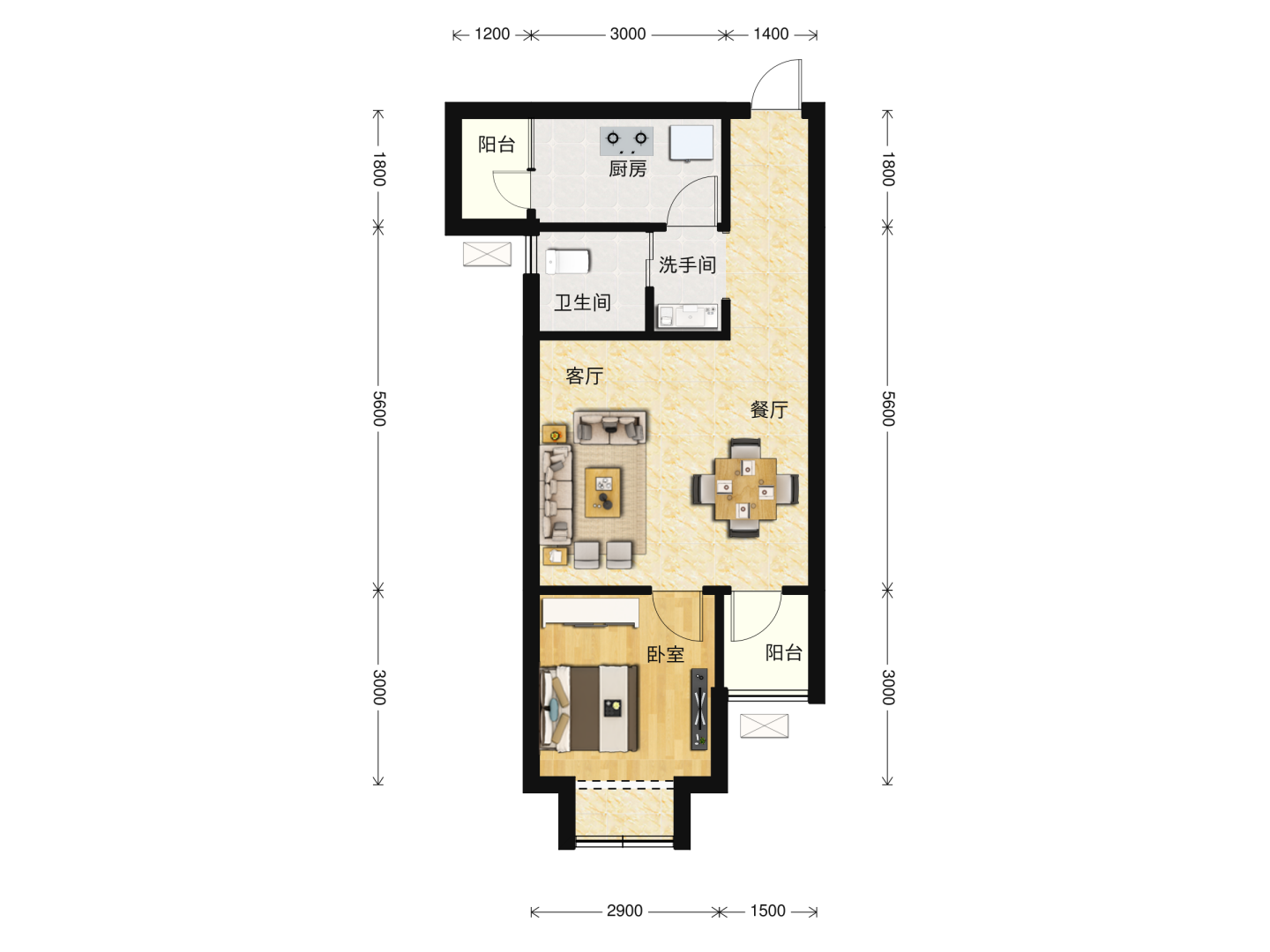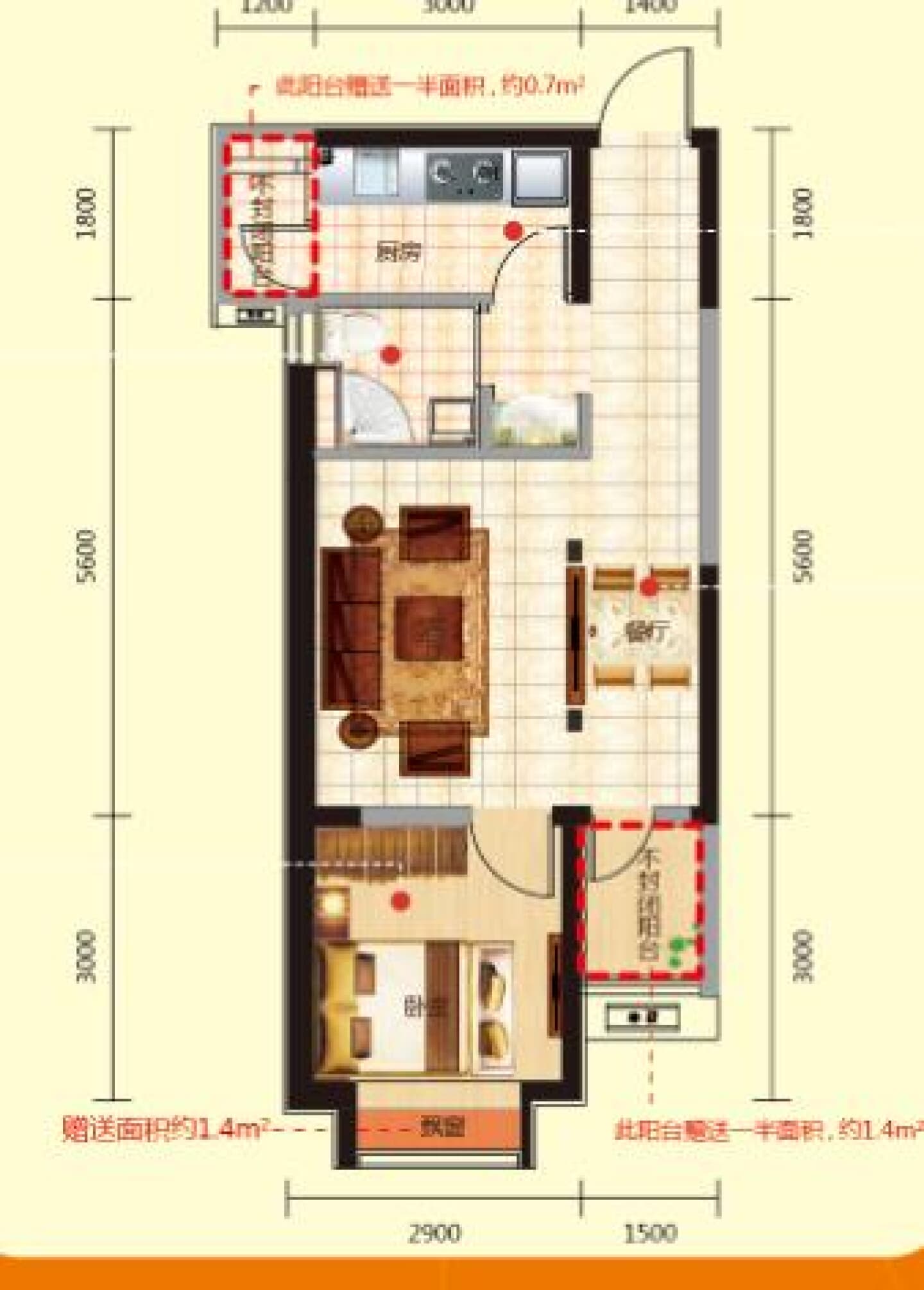 了解1室2厅1卫 商业类 在售户型的详细信息