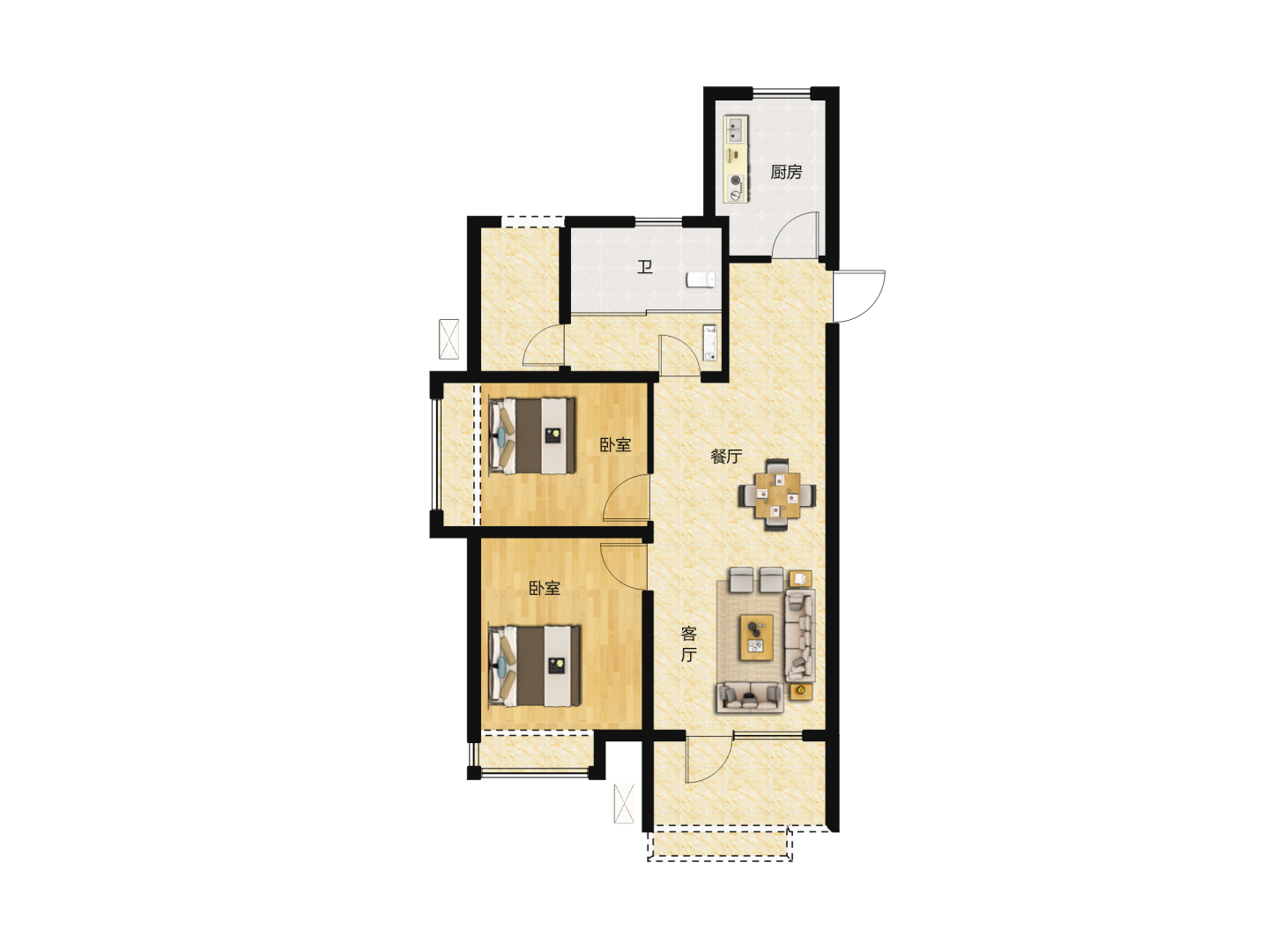 了解2室2厅1卫 住宅 在售户型的详细信息