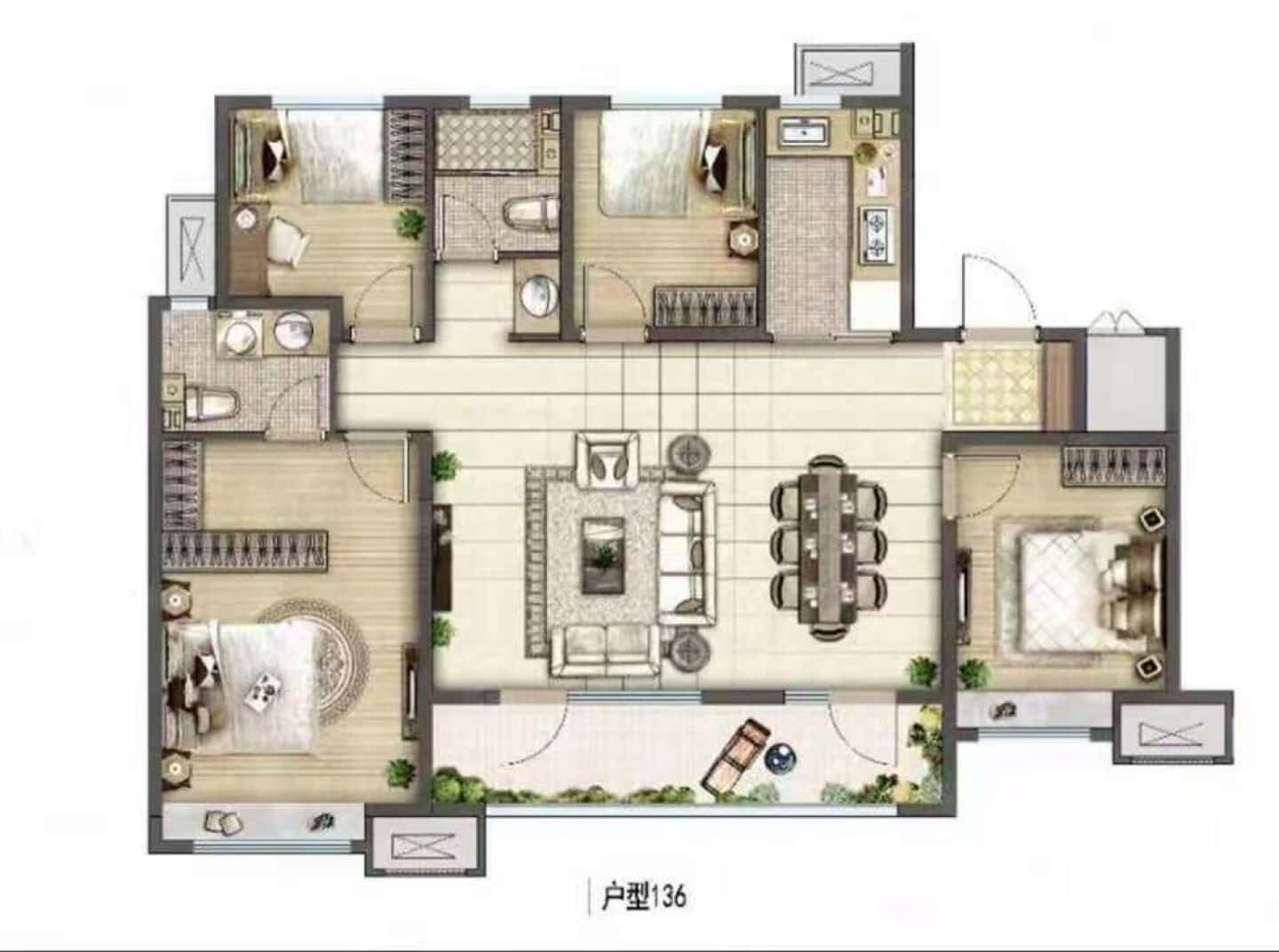 了解4室2厅2卫 住宅 在售户型的详细信息