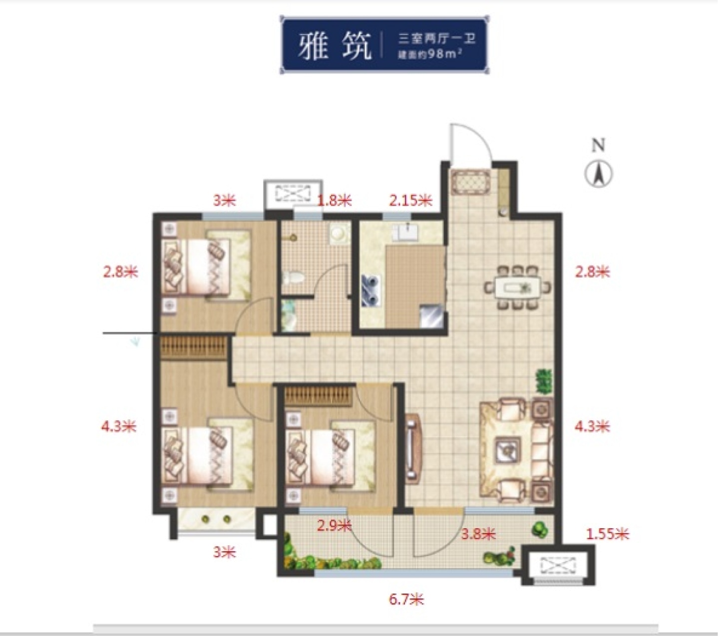 了解3室2厅1卫 住宅 售罄户型的详细信息