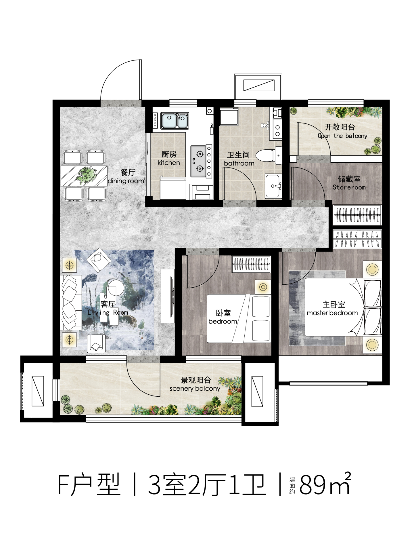 了解3室2厅1卫 住宅 在售户型的详细信息