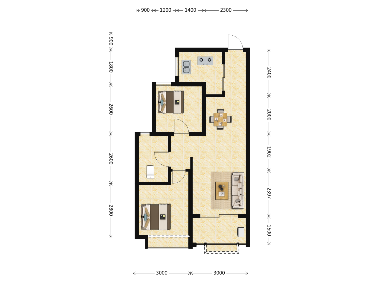了解2室2厅1卫 住宅 售罄户型的详细信息