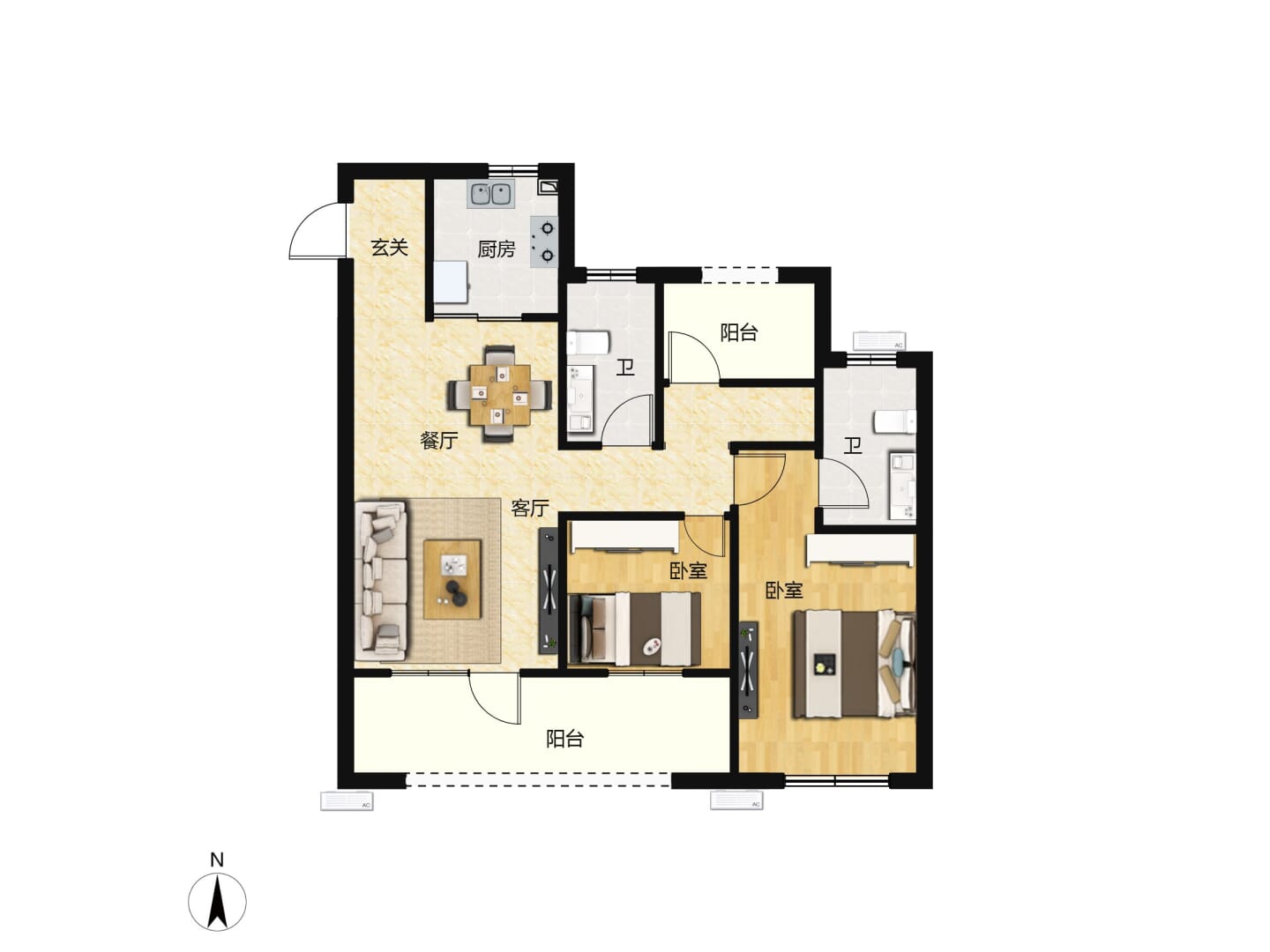 了解2室2厅2卫 住宅 在售户型的详细信息