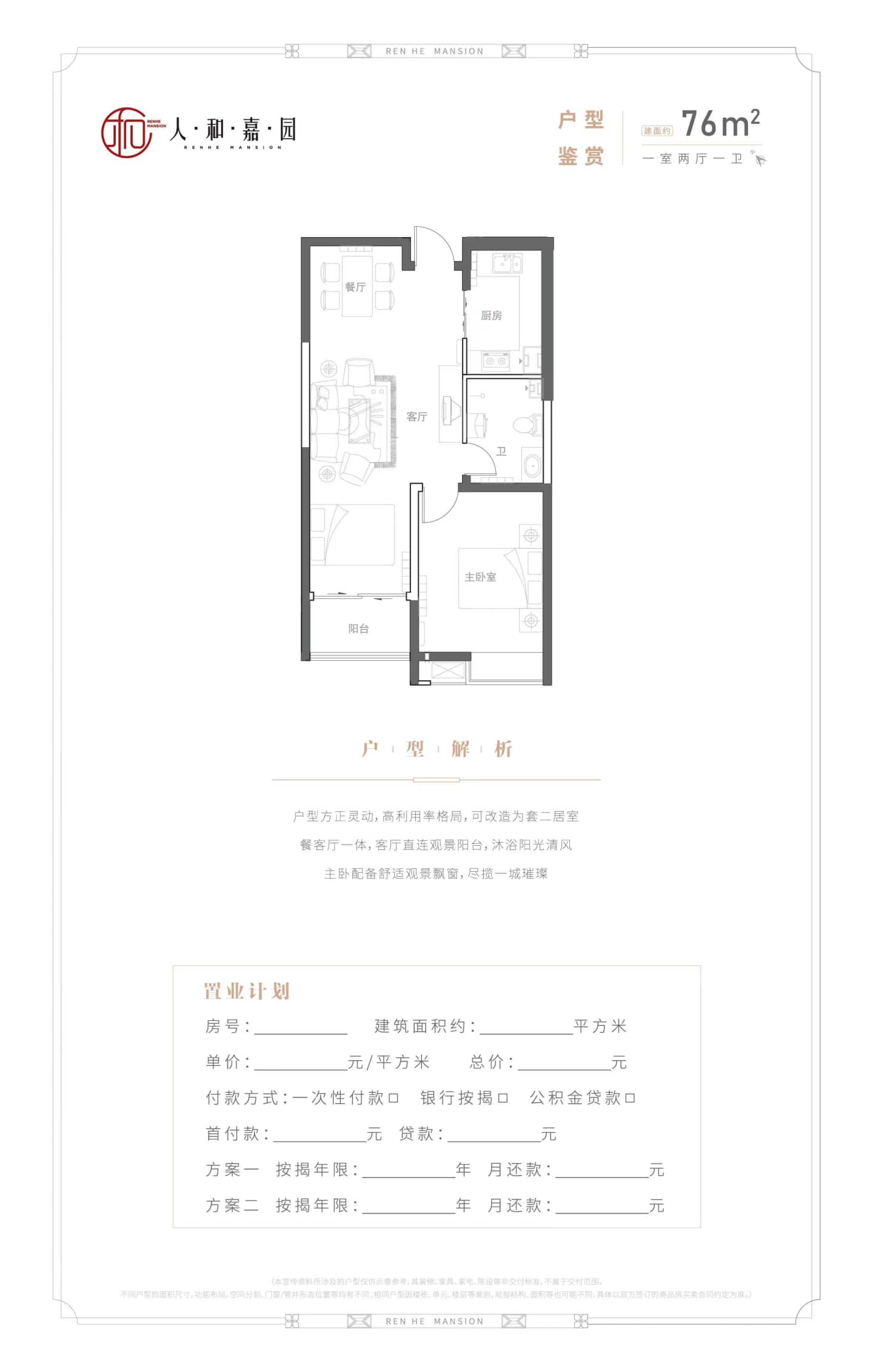 了解1室2厅1卫 住宅 在售户型的详细信息
