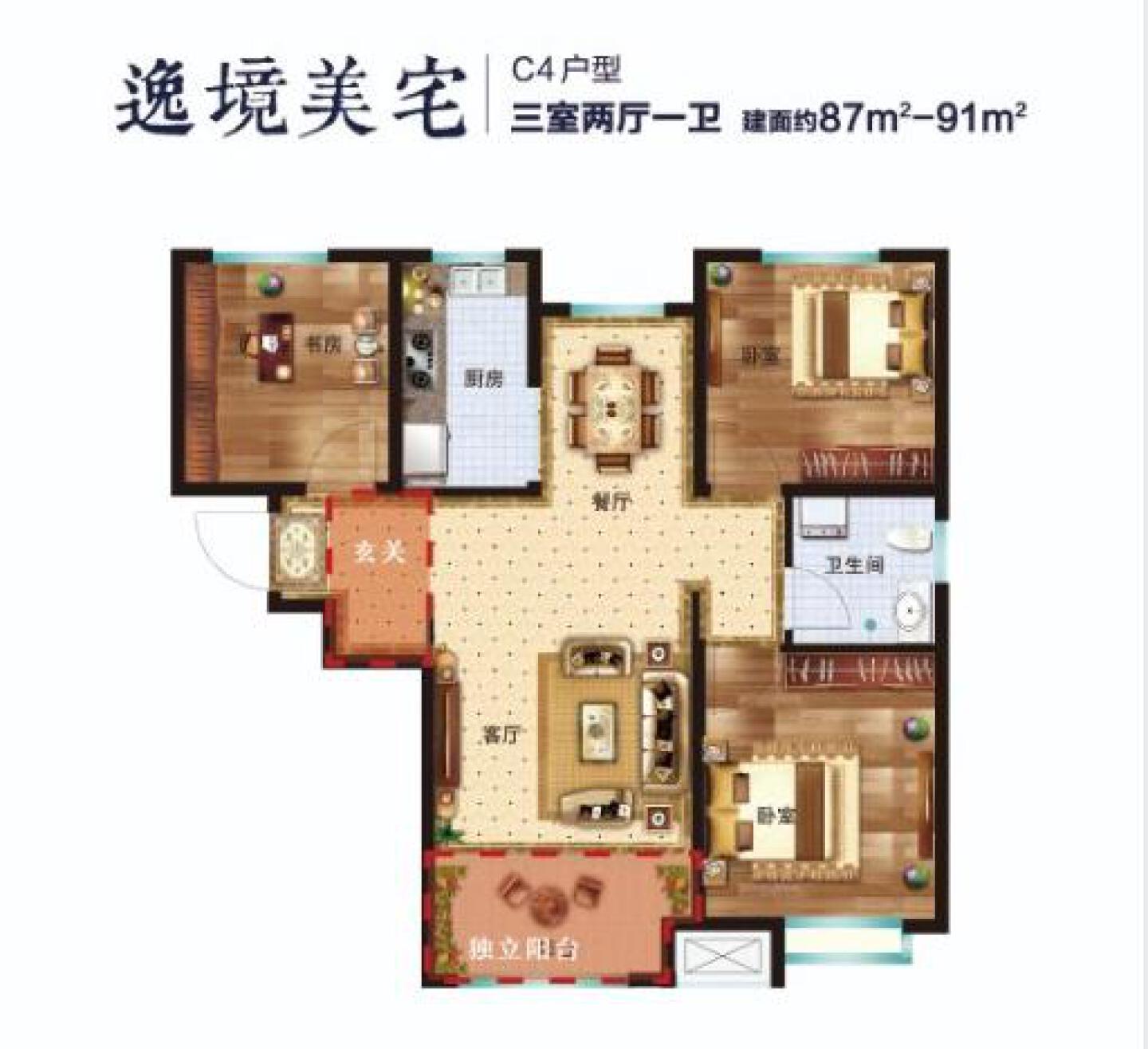 了解3室2厅1卫 住宅 售罄户型的详细信息