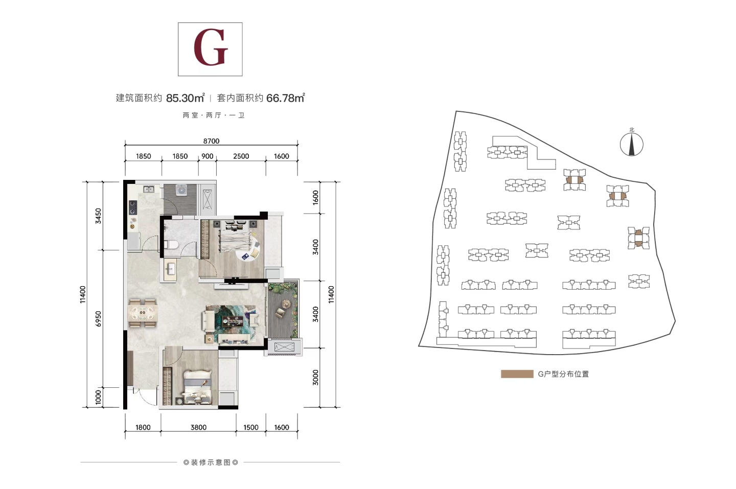 了解2室2厅1卫 住宅 在售户型的详细信息