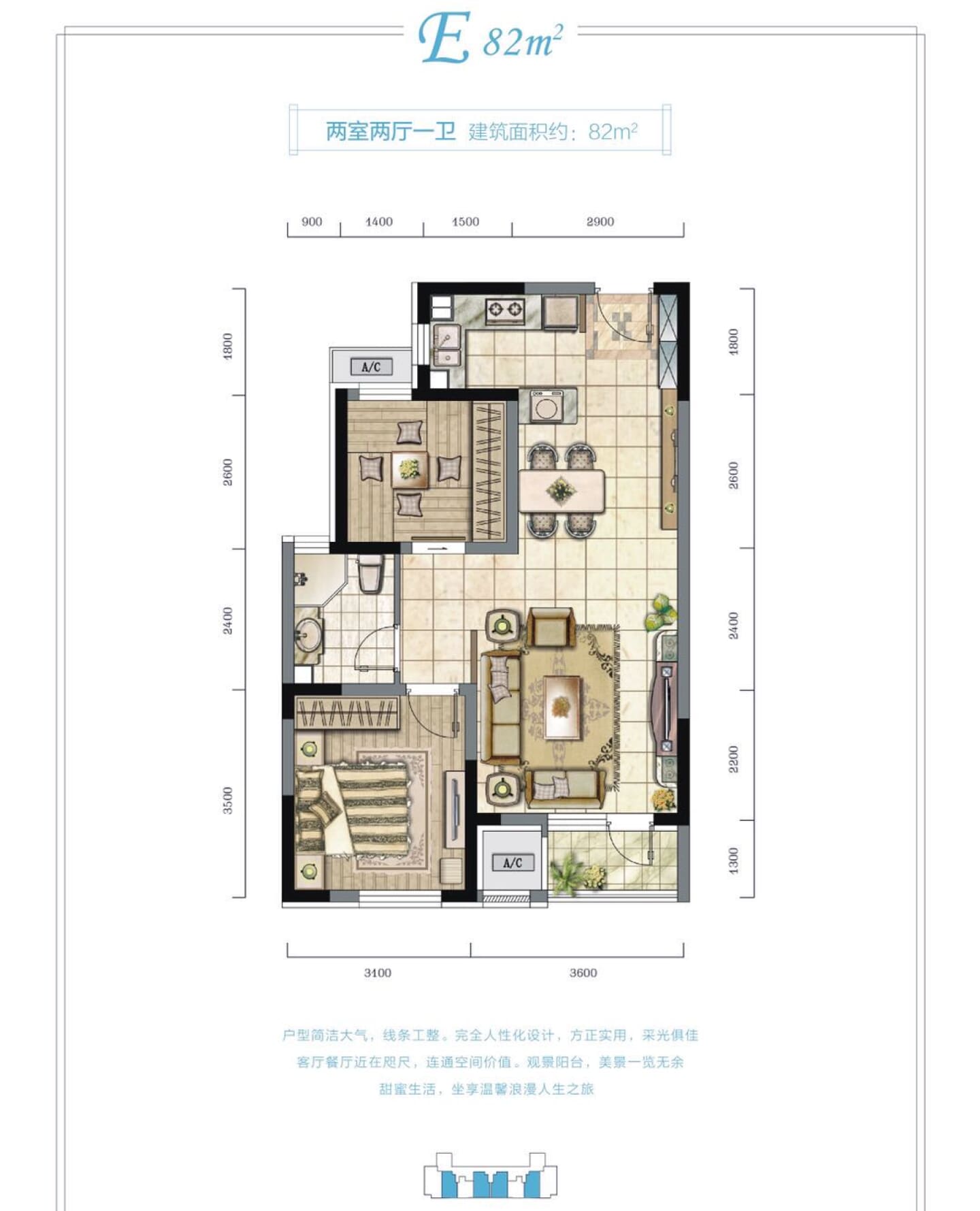 了解2室2厅1卫 住宅 在售户型的详细信息
