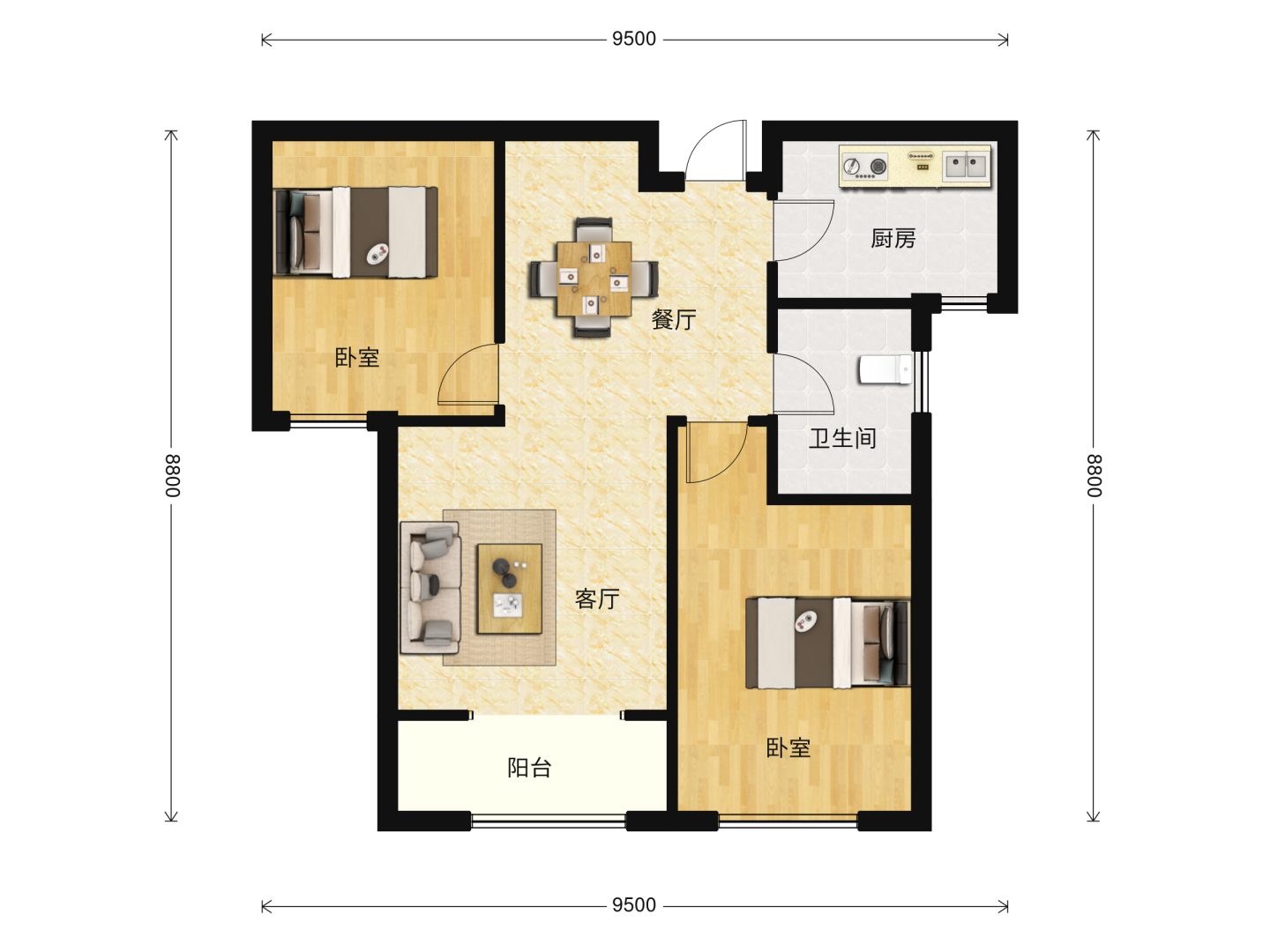 了解2室2厅1卫 住宅 在售户型的详细信息