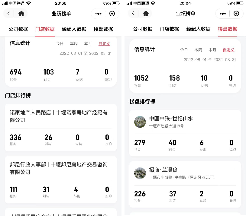 各项统计(公司/门店/经纪人/楼盘数据统计)