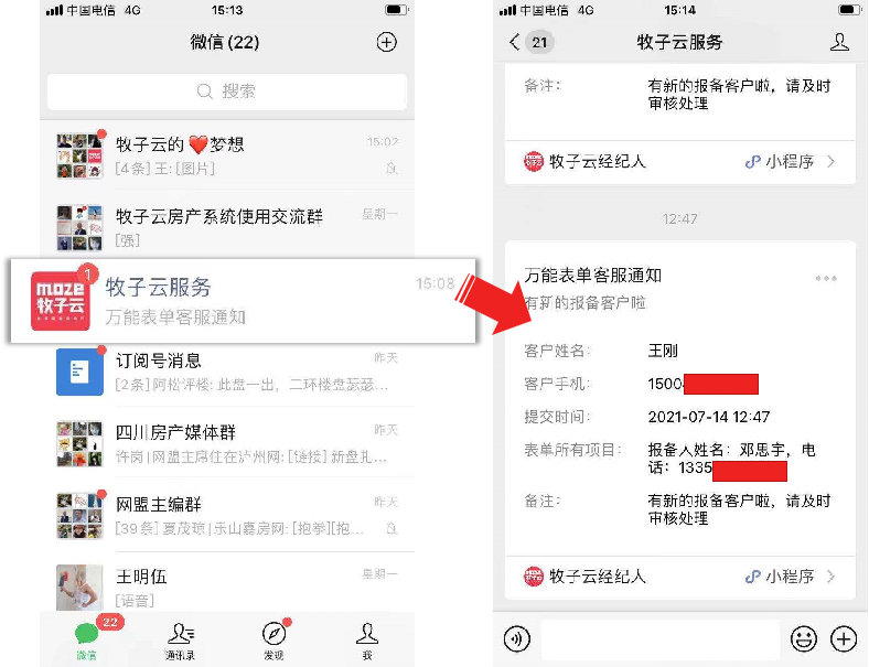 (3)智能发送报备信息,项目专员可以随时随地接收报备消息