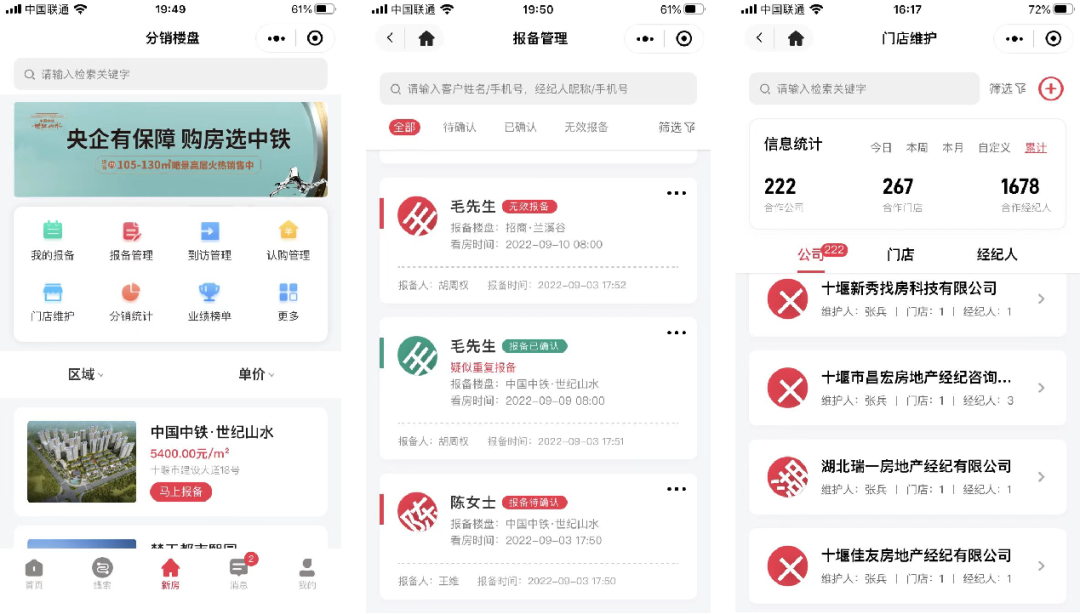 十房网是湖北十堰市当地有名的房产线上平台,从事平台业务多年,既具有媒体影响力,也具有分销楼盘能力;共计合作222家公司,267家门店,1678个经纪人,通过牧子云系统的“新房分销业务工具”使自己的楼盘分销业务效率提高,更具有敏捷性