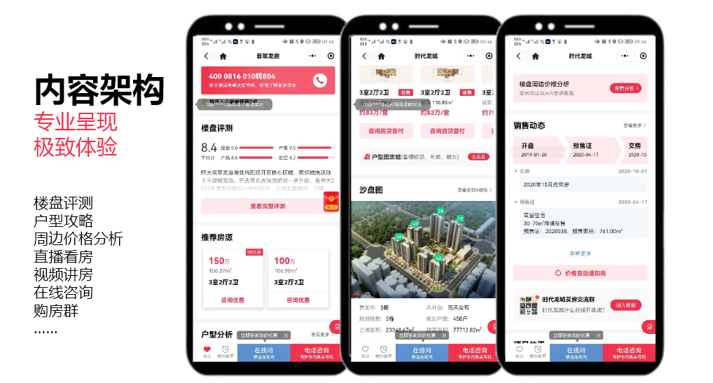 楼盘评测、户型攻略、周边价格分析等此类功能可以帮助购房者对于心仪楼盘有一个详细了解,平台站在带三方的角度去做楼盘评测,这就给购房者创造了价值内容。