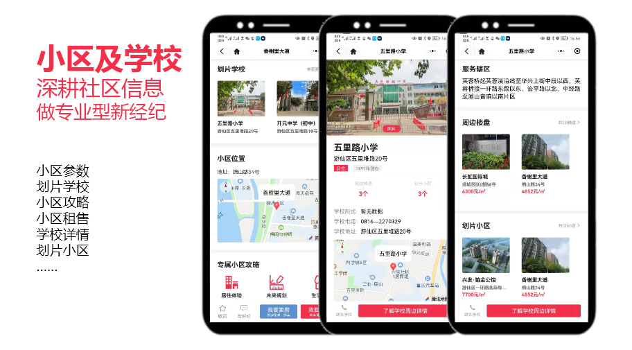 中国人是很重视教育的,买房就要考虑这个小区周边有哪些学校,学校的软硬件、师资力量等;这些内容我们的系统都提供展示功能,包括地图定位、学校详情、划片学校等,这些内容需要平台的运营者去完善