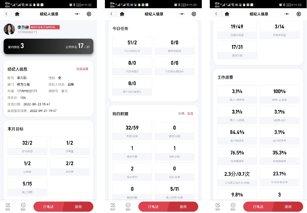 而且可以横向对比,哪些经纪人是优秀的,哪些经纪人的转化率高,可以让优秀经纪人来进行分享,带动全公司经纪人。