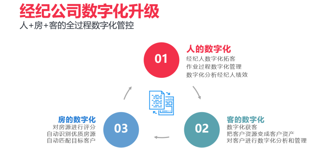 我们要做到三个方面的数字化,才能实现公司整体的数字化转型升级,人的数字化、客的数字化、房的数字化!