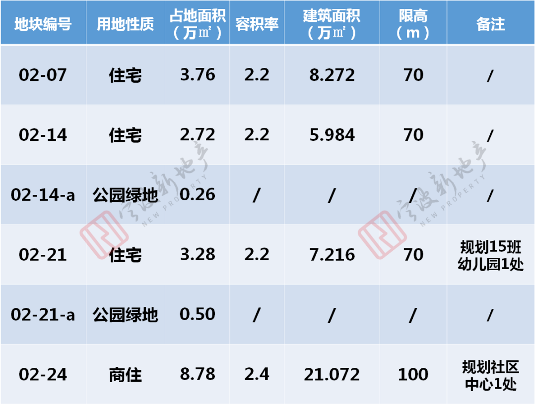 4、02-24地块规划未作调整,仍然是商住用地,用地面积8.78万㎡,容积率2.4,总建面约21.1万㎡,限高100米。