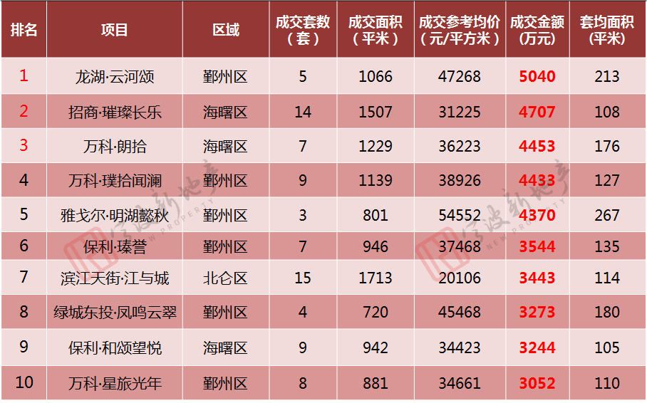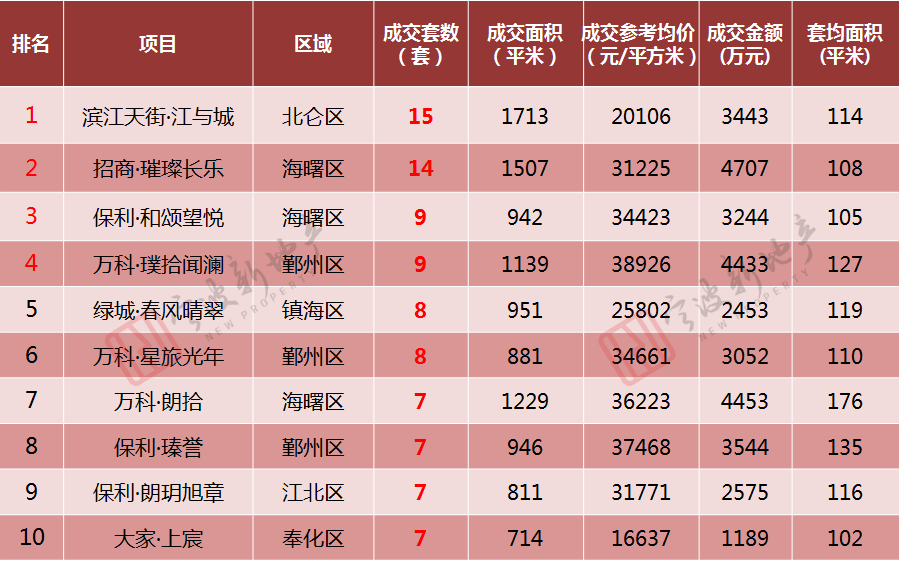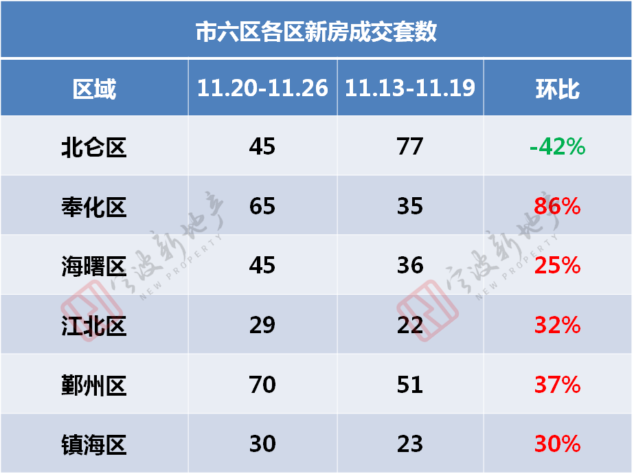 鄞州区*,备案70套,环比上升37%;奉化区排名第二,备案65套,环比上升86%;海曙区和北仑区排名并列第三,各备案45套,环比分别上升25%和下降42%;镇海区排名第五,备案30套,环比上升30%;江北区排名第六,备案29套,环比上升32%。