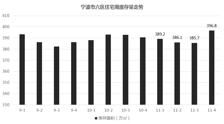 库存上,截至11月第4周,市六区共计留存商品房房源约396.8万平(33349套),环比上升3%。库存按照市六区近一年去化速度24.65万平/月,去化周期约为16.1个月。