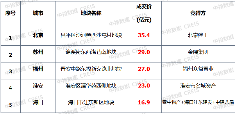 表:全国住宅用成交总价TOP5