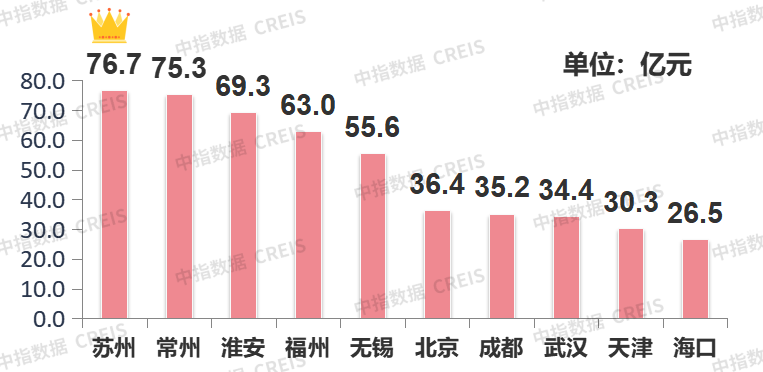 ▍总体情况:整体供求环比走高,苏州收金近77亿领跑