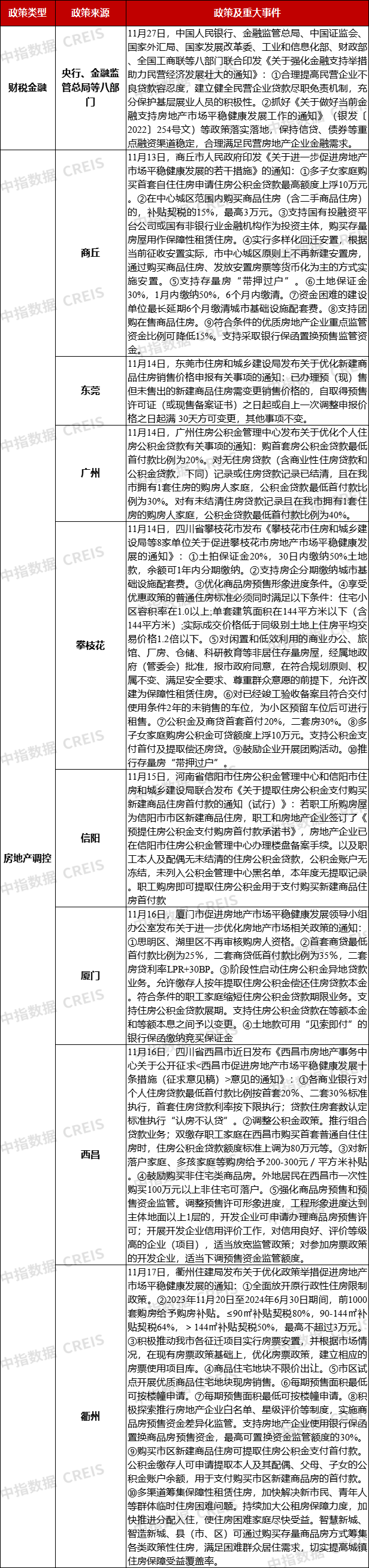 表:11月27日至12月3日房地产市场重点政策及事件汇总