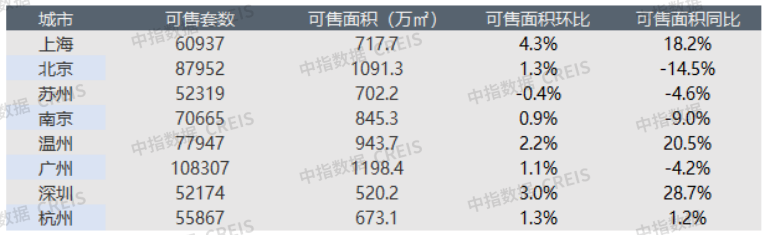 监测的8个代表城市整体库存环比略涨1.62%。其中,一线城市均上涨,上海、深圳环比上涨最高,涨幅分别为4.3%、3.04%;广州环比涨幅最低,为1.11%。二线城市中,温州涨幅最大,为2.22%,苏州降幅最大,为0.37%。