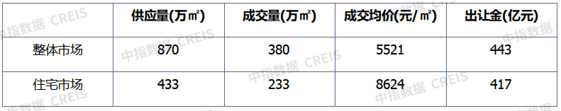 土地:供应量环比走高,宅地成交量增逾九成,整体均价环比上扬,宅地均价增近四成。